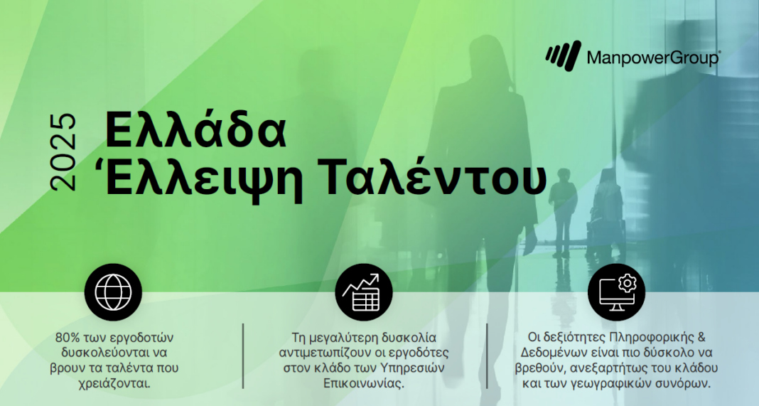 Σύμφωνα με την Έρευνα Έλλειψης Ταλέντου του ομίλου ManpowerGroup για το 2025, η δυσκολία εύρεσης κατάλληλων υποψηφίων παραμένει μια σοβαρή αλλά όχι ανυπέρβλητη πρόκληση για τις επιχειρήσεις στην Ελλάδα. Συγκεκριμένα, το 80% των εργοδοτών δήλωσε ότι αντιμετωπίζει δυσκολία στην κάλυψη θέσεων εργασίας, με το 57% να αναφέρει “κάποια δυσκολία” και το 23% “αρκετή δυσκολία”, ενώ μόλις το 19% κατέθεσε ότι δεν αντιμετωπίζει καμία δυσκολία. Παρά το γεγονός ότι το επίπεδο αυτό εξακολουθεί να είναι υψηλό, σημειώνεται μια ελαφρά μείωση σε σχέση με το 2024, όταν το αντίστοιχο ποσοστό έφτανε το 82%.