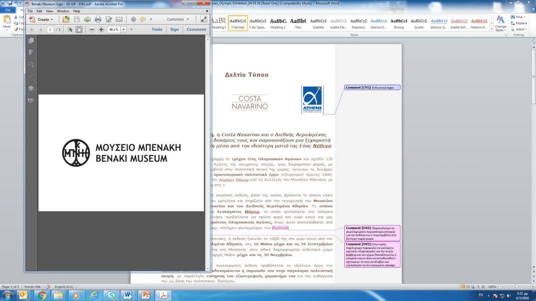Οι τρεις φορείς ένωσαν τις δυνάμεις τους την τριετία 2016-2018, για να προβάλουν σε επισκέπτες από όλο τον κόσμο, τον ελληνικό πολιτισμό και το πλούσιο έργο του Μουσείου Μπενάκη. Αυτή η στρατηγική συνεργασία οδήγησε στη γνωριμία του ταξιδιωτικού κοινού με την ελληνική καλλιτεχνική δημιουργία και ενίσχυσε την πρόσβαση στις πολιτιστικές αξίες. Το πολιτιστικό κεφάλαιο του Μουσείου αξιοποιήθηκε μέσα από τη διοργάνωση παράλληλων εκθέσεων και δράσεων, σε ειδικά διαμορφωμένους χώρους, στο αεροδρόμιο της Αθήνας και στην Costa Navarino.