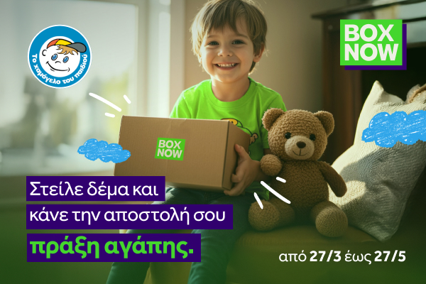 Η BOX NOW, πιστή στη δέσμευσή της για κοινωνική προσφορά, εγκαινιάζει μια σημαντική φιλανθρωπική πρωτοβουλία σε συνεργασία με τον μη κερδοσκοπικό οργανισμό «Το Χαμόγελο του Παιδιού», που στοχεύει να μετατρέψει την καθημερινή πράξη της αποστολής ενός δέματος σε μια ουσιαστική πράξη αγάπης και αλληλεγγύης.