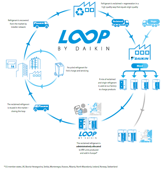 Το συγκεκριμένο πρόγραμμα αποτελεί ένα τέλειο παράδειγμα κυκλικής οικονομίας και ανακύκλωσης, το οποίο καταφέρνει να αξιοποιήσει πλήρως, ολόκληρο το εμπορικό και τεχνικό δίκτυο της Daikin, τους επιχειρηματικούς εταίρους της δηλαδή σε όλη την Ευρώπη.