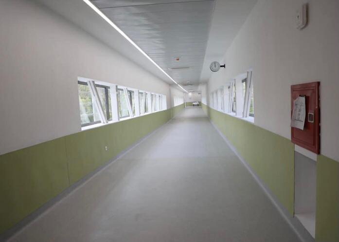 Η συνδετήρια αυτή, κλειστή πεζογέφυρα, μήκους 125 τ.μ., διαθέτει ανεξάρτητο σύστημα κλιματισμού-αερισμού, καθώς επίσης και τις απαραίτητες εξόδους διαφυγής για λόγους πυροπροστασίας. Το έργο εξασφαλίζει την ασφαλή και νοσοκομειολογικά ορθή μεταφορά ασθενών, κυκλοφορία του ιατρικού και νοσηλευτικού προσωπικού και διακίνηση υλικού. Επίσης, η κατασκευή του εξωτερικού ασθενοφόρου ανελκυστήρα στο κτίριο «ΧΕΙΡΟΥΡΓΙΚΟ ΠΕΡΙΠΤΕΡΟ» συμπληρώνει λειτουργικά το έργο, διασφαλίζοντας τις παραπάνω απαιτήσεις. Τέλος, πολύ σημαντική είναι η νέα διαμόρφωση της κεντρικής εισόδου, στο ισόγειο του κτιρίου «ΧΕΙΡΟΥΡΓΙΚΟ ΠΕΡΙΠΤΕΡΟ», με ράμπες πρόσβασης αμαξιδίων ΑΜΕΑ, φορείων και θύρες εισόδου.