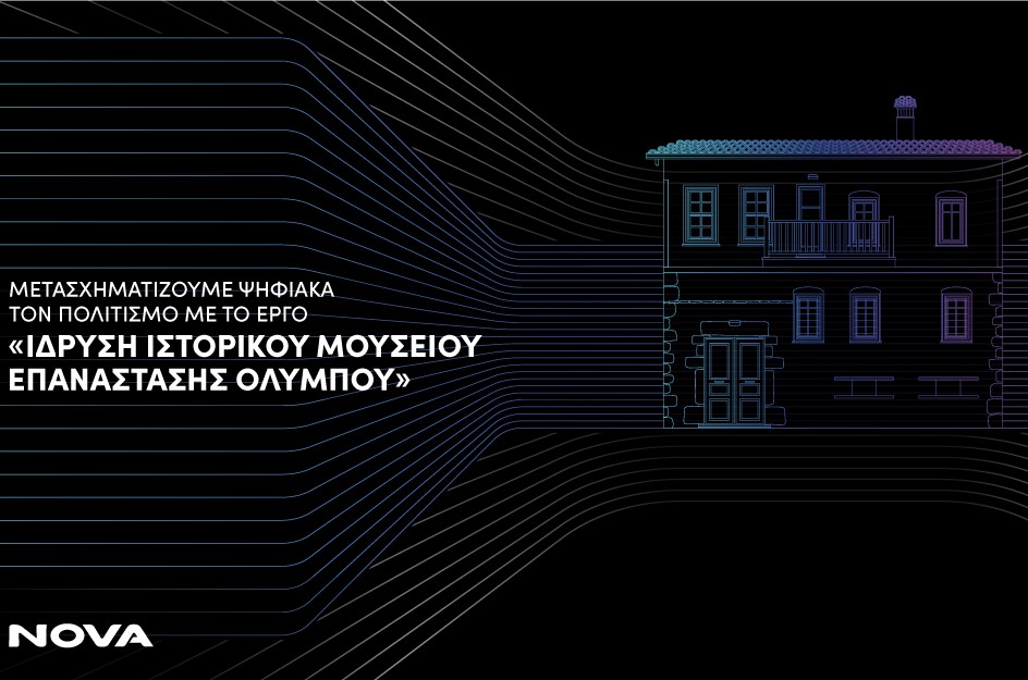 Η Nova, μέλος της United Group, του κορυφαίου παρόχου τηλεπικοινωνιών και media στην Νοτιοανατολική Ευρώπη, στο πλαίσιο της Ίδρυσης του Ιστορικού Μουσείου Επανάστασης Ολύμπου, συμβάλει ενεργά, ως ανάδοχος, στη δημιουργία της σύγχρονης διαδραστικής ψηφιακής έκθεσης του μουσείου. Η Nova, μέσα από την χρήση σύγχρονων ψηφιακών οπτικοακουστικών τεχνολογιών εικονικής πραγματικότητας (VR) και 3D animation συμβάλλει στη δημιουργία του Ιστορικού Μουσείου Επανάστασης Ολύμπου. Με στόχο την ανάδειξη της ιστορίας του Δήμου Δίου Ολύμπου μετασχηματίζει το πολιτιστικό τοπίο της περιοχής δίνοντας στο κοινό την ευκαιρία να γνωρίσει με εύληπτο και βιωματικό τρόπο την πολιτιστική κληρονομιά του τόπου αυτού.