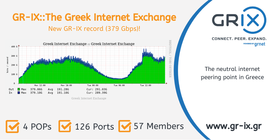 Είναι χαρακτηριστικό ότι σύμφωνα με δημοσίευση του GR-IX, στις 15 Δεκεμβρίου ο όγκος της κίνησης έφθασε στα 379 Gbps, επίδοση που αποτελεί ρεκόρ όλων των εποχών για το ελληνικό Διαδίκτυο.