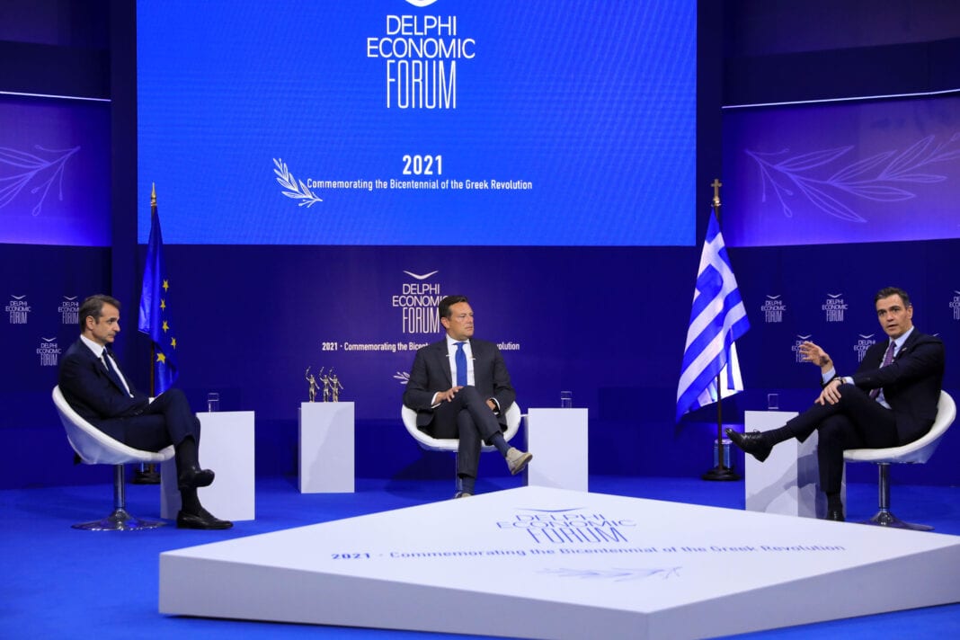Στη σημασία της γρήγορης έκδοσης πράσινου πιστοποιητικού εμβολιασμού για τη διασφάλιση της ελεύθερης διακίνησης των Ευρωπαίων πολιτών αναφέρθηκε ο πρωθυπουργός Κυριάκος Μητσοτάκης στη συζήτηση με τον Ισπανό ομόλογο του Πέδρο Σάντσεθ, κατά την πρώτη ημέρα των εργασιών του 6ου Οικονομικού Φόρουμ των Δελφών που πραγματοποιείται στο Ζάππειο και το οποίο τελεί υπό την Αιγίδα της Α.Ε. της Προέδρου της Δημοκρατίας, Κατερίνας Σακελλαροπούλου.