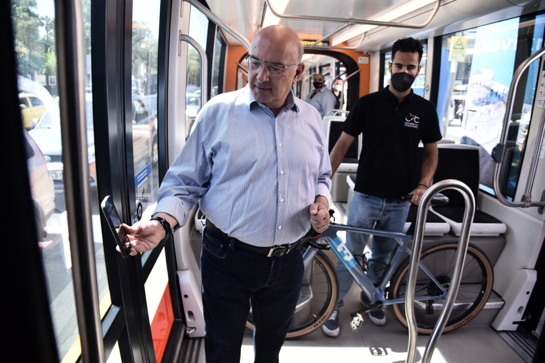Την εφαρμογή ενημέρωσης για τους κανόνες χρήσης του ποδηλάτου στα Μέσα Μεταφοράς που πραγματοποιεί το Υπουργείο Υποδομών και Μεταφορών σε συνεργασία με τη ΣΤΑΣΥ, εγκαινίασε το Σάββατο 4 Ιουνίου 2022, στον τερματικό σταθμό του Τραμ στο Σύνταγμα ο Υφυπουργός Υποδομών και Μεταφορών, αρμόδιος για τις Μεταφορές κ. Μιχάλης Παπαδόπουλος, με τον Πρόεδρο των Σταθερών Συγκοινωνιών (ΣΤΑΣΥ) κ. Χάρη Δαμάσκο και τον Διευθύνοντα Σύμβουλο της ΣΤΑΣΥ, Αθανάσιο Κοττάρα.