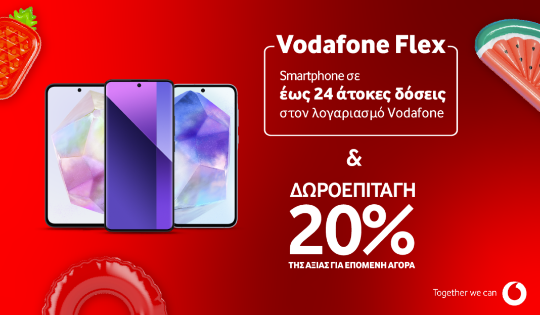 Η Vodafone προσφέρει σε όλους όσοι θέλουν να αποκτήσουν το αγαπημένο τους Smartphone με την υπηρεσία Vodafone Flex, επιστροφή 20% της αξίας της συσκευής που θα επιλέξουν σε δωροεπιταγή για την επόμενη αγορά τους.