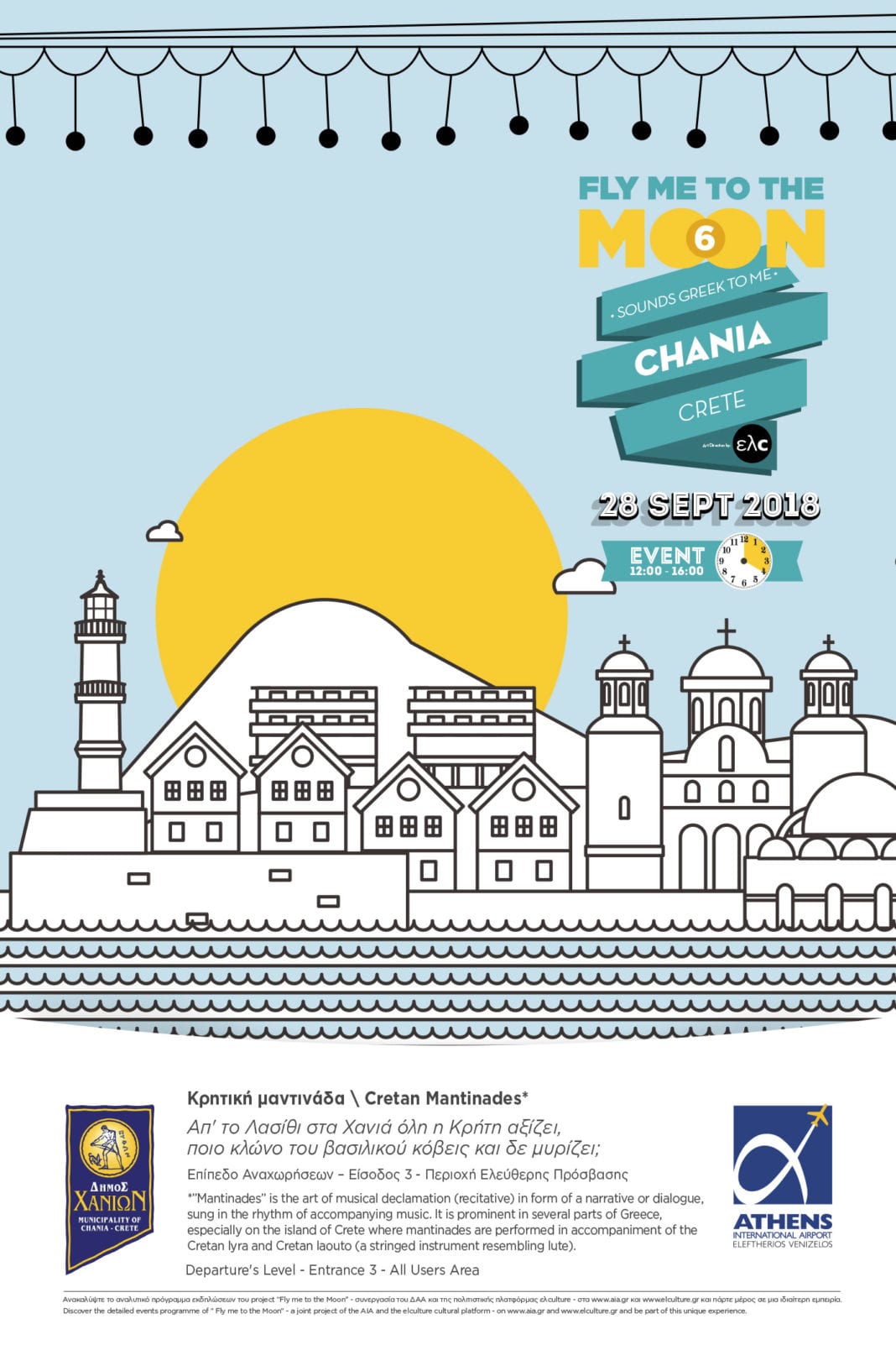 Το Fly me to the Moon 6 συνεχίζεται την Παρασκευή, 28 Σεπτεμβρίου, με το δεύτερο ελληνικό προορισμό του προγράμματος, τα Χανιά. Οι ταξιδιώτες και οι επισκέπτες θα απολαύσουν ένα μοναδικό πλούσιο πρόγραμμα, που περιλαμβάνει μουσική και χορούς από παραδοσιακό κρητικό συγκρότημα και χορευτές, μαντινάδες και «διάλογο» μεταξύ κοινού και πρωτοχορευτή, και, βεβαίως, στιγμές μοναδικής χανιώτικης γαστρονομίας, με ντόπια προϊόντα και εισαγωγή στα μυστικά της προετοιμασίας του παραδοσιακού ντάκου!