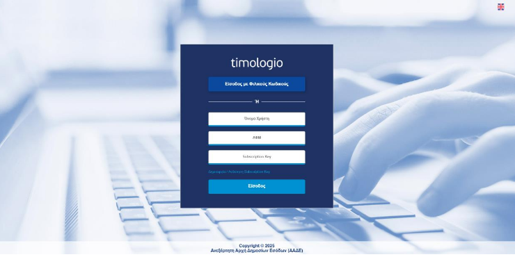 Η πρόσβαση στην εφαρμογή timologio B2G είναι διαθέσιμη μέσω της εφαρμογής timologio της ΑΑΔΕ στο https://www.aade.gr/timologio.