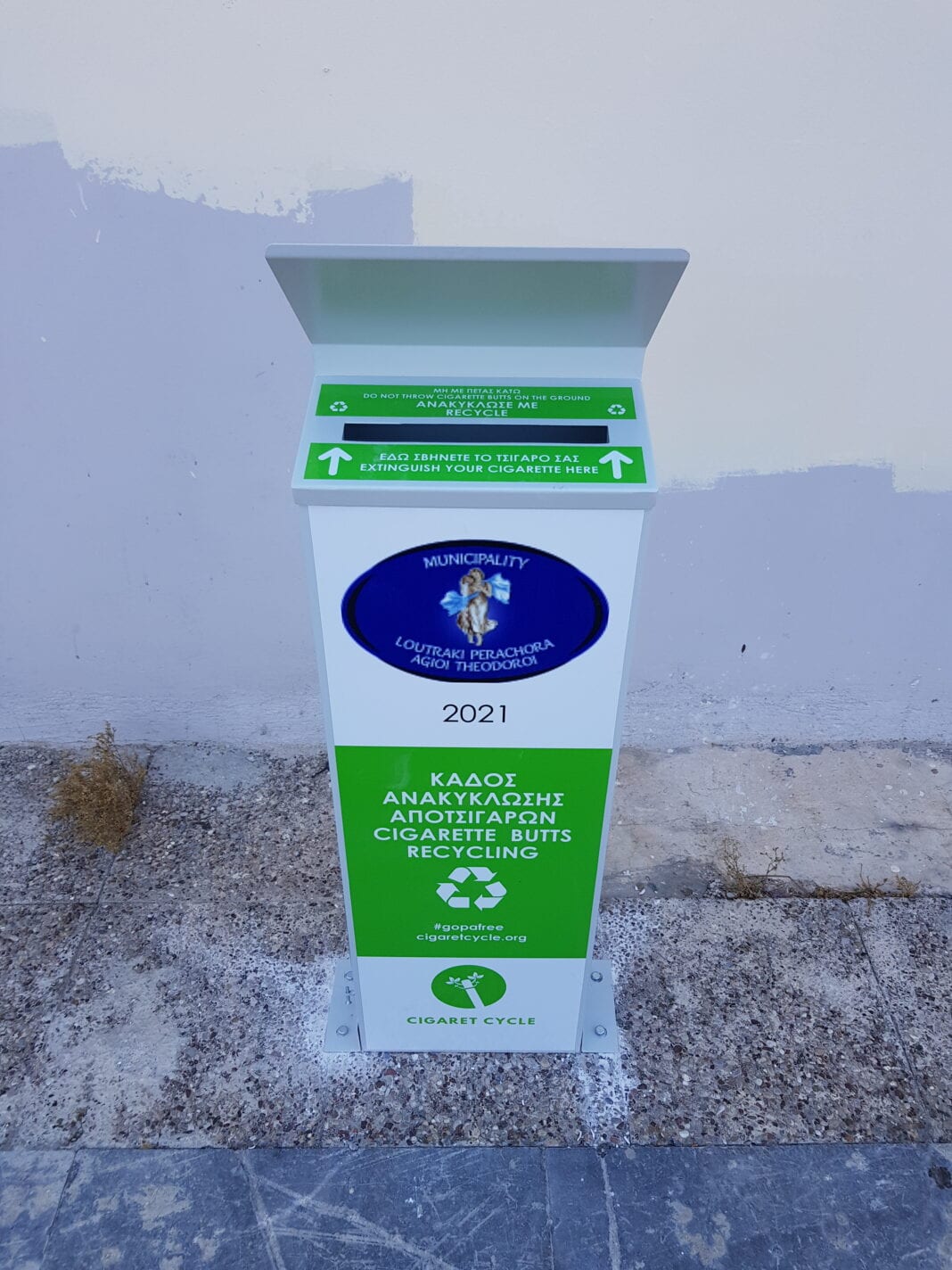 Ο Δήμος Λουτρακίου – Περαχώρας – Αγίων Θεοδώρων συμμετέχει πλέον στο καινοτόμο πρόγραμμα #gopafree που υλοποιεί η ΑΜΚΕ Cigaret Cycle σε όλη τη χώρα και έχει στόχο την προστασία του Περιβάλλοντος μέσα από τη συλλογή των αποτσίγαρων και την προώθησή τους προς ανακύκλωση.