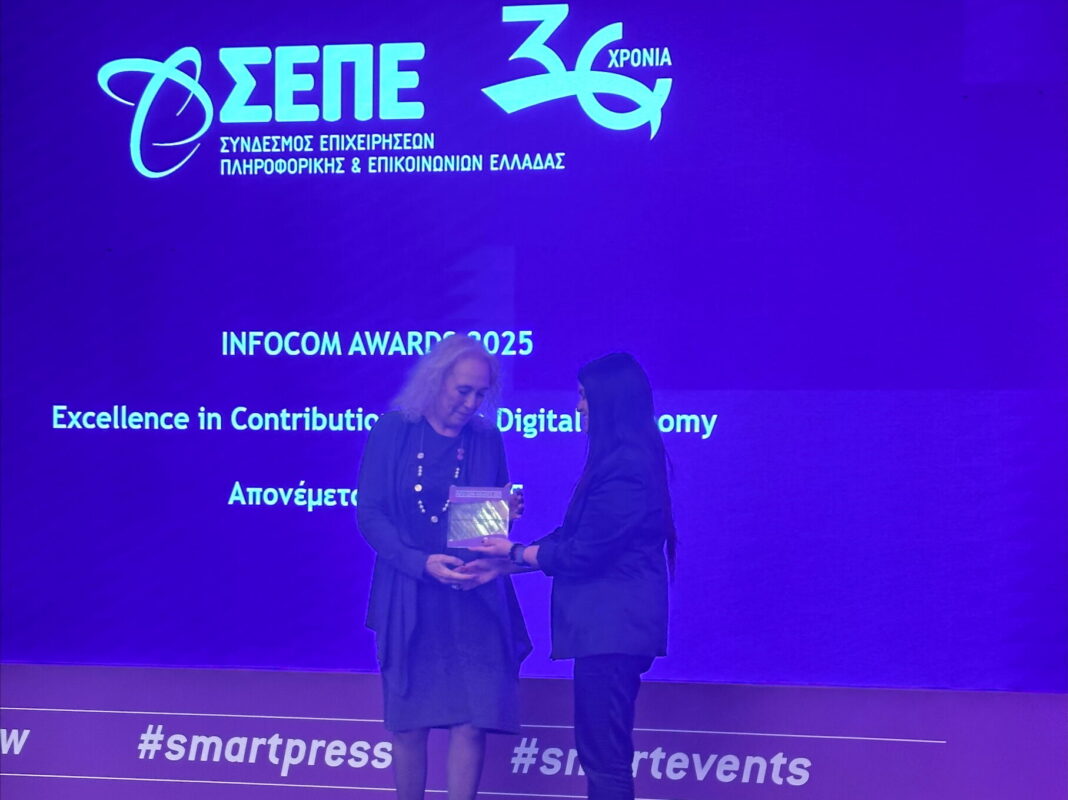 Ο Σύνδεσμος Επιχειρήσεων Πληροφορικής & Επικοινωνιών Ελλάδας (ΣΕΠΕ), ανακοινώνει τη διάκρισή του με το βραβείο «Excellence in Contribution to the Digital Economy» στο πλαίσιο των ετήσιων βραβείων InfoCom Awards 2025. Η τελετή απονομής πραγματοποιήθηκε την Τετάρτη 26 Νοεμβρίου 2025 στο ξενοδοχείο Divani Caravel, κατά τη διάρκεια του 27ου Συνεδρίου InfoCom World 2025, με κεντρικό θέμα “AI-Volution: A Brave New World!”.