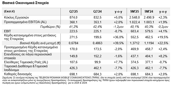 Μετά την πώληση της TELEKOM ROMANIA MOBILE (TKRM), η εταιρεία αναπροσάρμοσε τους στόχους της για το 2025, ώστε να αντικατοπτρίζουν προβλέψεις μόνο για την Ελλάδα: