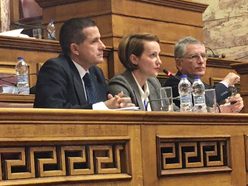 Η Γενική Γραμματέας Ενέργειας και Ορυκτών Πρώτων Υλών του ΥΠΕΝ κ. Αλεξάνδρα Σδούκου αναφέρθηκε στο στόχο αύξησης της διείσδυσης των ΑΠΕ στον ενεργειακό μείγμα στο 35% έως το 2030 (σχεδόν διπλάσιο από τα σημερινά επίπεδα) και τις πρωτοβουλίες που έχουν ήδη αναληφθεί και που προγραμματίζονται προς την κατεύθυνση αυτή, από την απλοποίηση και επιτάχυνση όλων των αδειοδοτικών διαδικασιών –αρχής γενομένης από την άδεια παραγωγής- έως την εκπόνηση νέου Ειδικού Χωροταξικού Σχεδίου για τις ΑΠΕ.