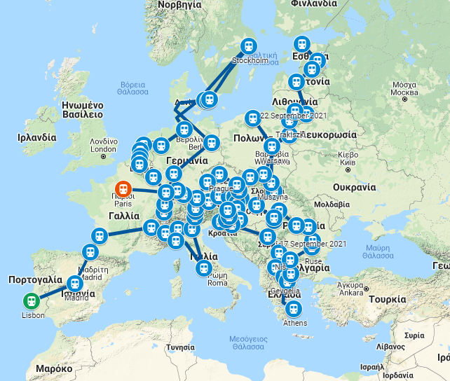 Το τρένο θα ξεκινήσει το ταξίδι του στις 2 Σεπτεμβρίου από τη Λισαβόνα και θα κάνει στάση σε πάνω από 70 πόλεις σε 26 χώρες, συνδέοντας έτσι την πορτογαλική, τη σλοβενική και τη γαλλική Προεδρία του Συμβουλίου της ΕΕ, προτού κάνει τέρμα στο Παρίσι στις 7 Οκτωβρίου.