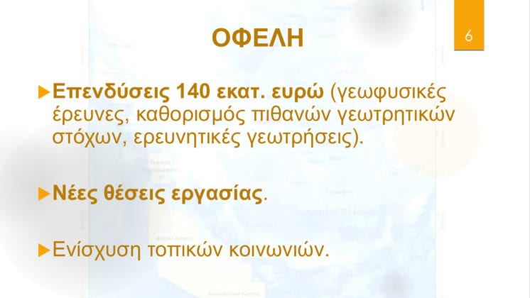 Η Ελλάδα έχει σήμερα 9 θαλάσσιες και χερσαίες παραχωρήσεις. Με την κύρωση από τη Βουλή των σημερινών τεσσάρων συμβάσεων, ο συνολικός αριθμός θα ανέλθει σε 13. Αυτή η εξέλιξη, μακροπρόθεσμα, θα ενισχύσει περαιτέρω την ενεργειακή ασφάλεια και τον εφοδιασμό της Ελλάδας καθώς και τη γεωστρατηγική θέση μας ως έναν σημαντικό ενεργειακό κόμβο της Ευρώπης.