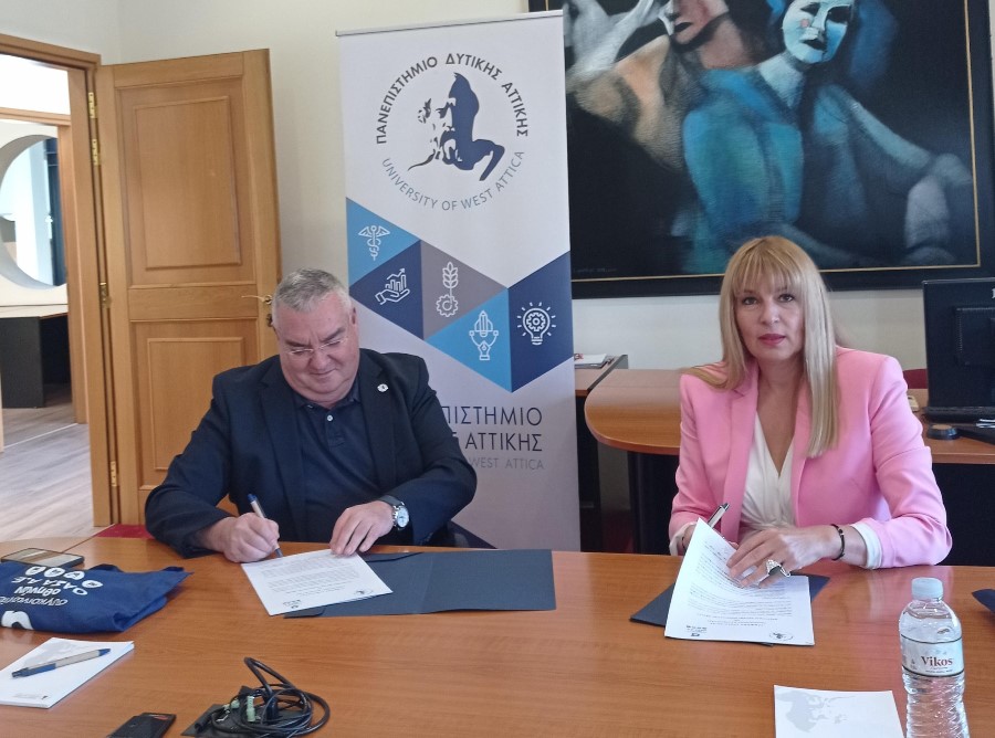 Το μνημόνιο συνεργασίας με σκοπό την ανταλλαγή τεχνογνωσίας, υπέγραψαν τη Δευτέρα 17.10.2022 ο Πρύτανης του Πανεπιστημίου Δυτικής Αττικής, καθηγητής Παναγιώτης Ε. Καλδής και η Διευθύνουσα Σύμβουλος του Οργανισμού Αστικών Συγκοινωνιών Αθηνών, κυρία Ίριδα Αντωνοπούλου.