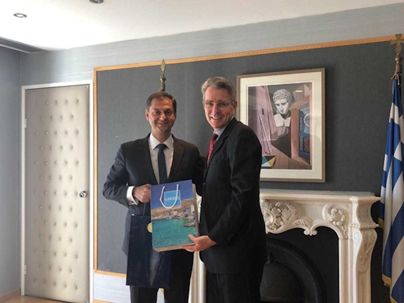 Η ενίσχυση των απευθείας αεροπορικών συνδέσεων ώστε να αυξηθεί ο αριθμός των Αμερικανών επισκεπτών στην Ελλάδα, και η προσέλκυση μεγάλων κινηματογραφικών παραγωγών, ήταν ένα από τα θέματα που συζητήθηκαν στη συνάντηση που είχε ο ο υπουργός Τουρισμού κ. Χάρης Θεοχάρης με τον πρέσβη των ΗΠΑ κ. Geoffrey Pyatt την Πέμπτη 19 Σεπτεμβρίου.