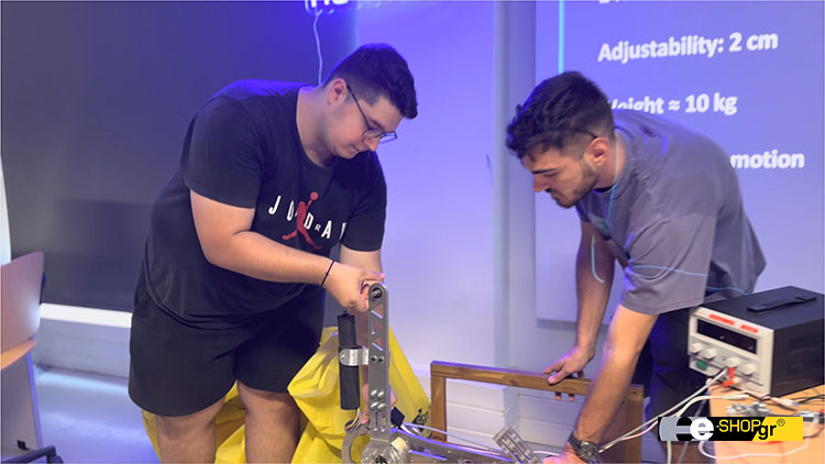 Κατά την διάρκεια της συνάντησης, το e-shop.gr προσέφερε δωρεάν τεχνολογικό εξοπλισμό θέλοντας να υποστηρίξει έμπρακτα το σπουδαίο έργο των φοιτητών και απένειμε τιμητική πλακέτα στον Υπεύθυνο καθηγητή της ομάδας ,κ. Νικόλαο Μπέλα, ενώ η φοιτητική ομάδα Hermes έκανε μια εκτενή παρουσίαση για τον σκοπό και την σημασία του εξοπλισμού στις ζωές πολλών συνανθρώπων μας.