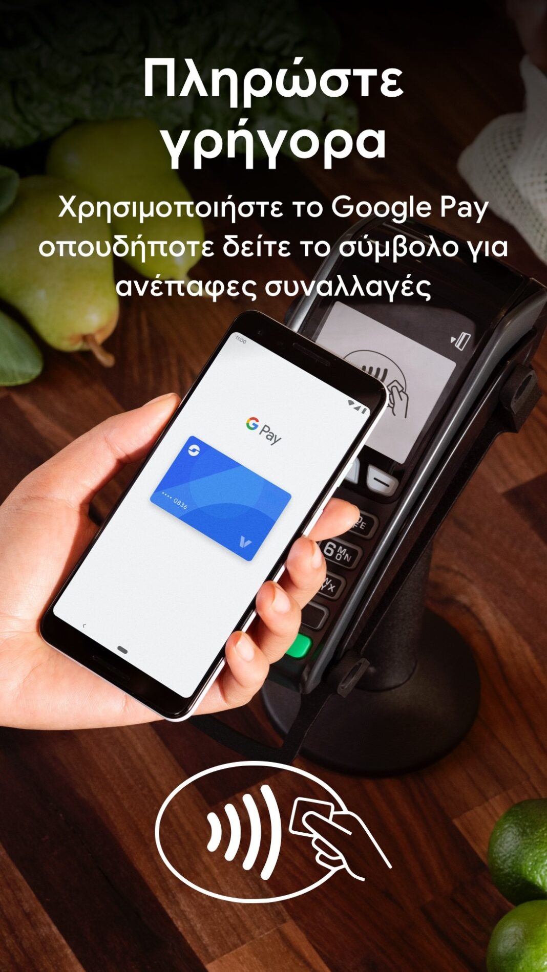 Η νέα εφαρμογή Google Pay υποσχεται να προσφέρει δημοφιλείς και χρήσιμες υπηρεσίες, όπως το “tap and pay” – για εύκολες ανέπαφες συναλλαγές σε καταστήματα ή μέσα μαζικής μεταφοράς – κάνοντας απλούστερη τη χρήση πολλών καρτών και παρέχοντας τη δυνατότητα αναζήτησης συναλλαγών για να παρακολουθείτε το ιστορικό σας και να ελέγχετε τα έξοδα σας. Μαζί με την εφαρμογή για Android θα κυκλοφορήσει στην Ελλάδα και το Google Pay για Wear OS, κάνοντας την εμπειρία “tap and pay” ακόμα πιο απλή με τη χρήση του smartwatch σας. Σταδιακά, η εφαρμογή θα εμπλουτιστεί με άλλες υπηρεσίες, διαθέσιμες και σε περισσότερες πλατφόρμες.