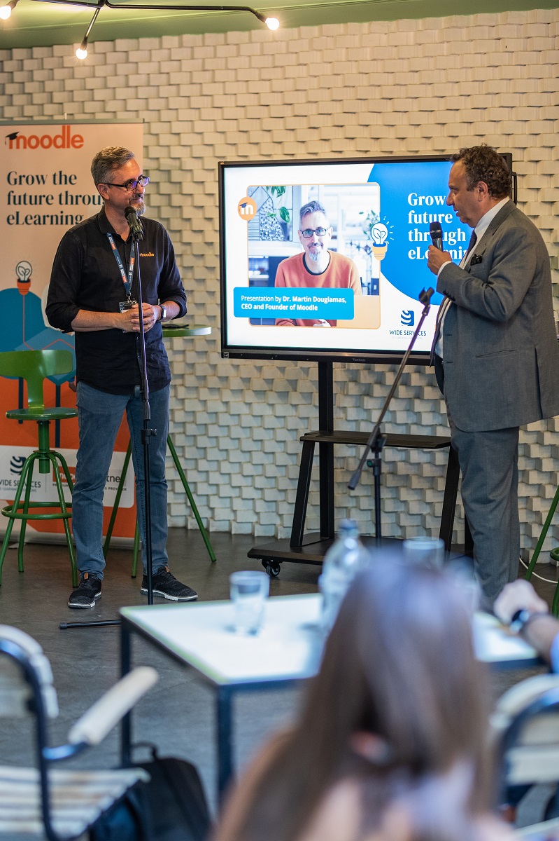 Η WIDE Services, Premium πιστοποιημένος συνεργάτης του Moodle είχε την τιμή να διοργανώσει μία μοναδική εκδήλωση για το μέλλον των καινοτόμων υπηρεσιών ασύγχρονης ηλεκτρονικής μάθησης, με τίτλο «Grow the future through eLearning» και επίτιμο προσκεκλημένο και κεντρικό ομιλητή τον Dr. Martin Dougiamas, Ιδρυτή και Διευθύνοντα Σύμβουλο της Moodle Pty Ltd. Ο Dr. Dougiamas βρέθηκε στη χώρα μας με αφορμή την αναγόρευσή του σε Επίτιμο Διδάκτορα του Τμήματος Ψηφιακών Συστημάτων του Πανεπιστημίου Πειραιά.