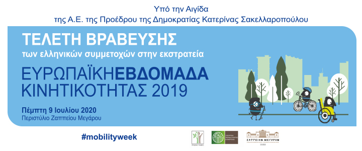 Τις ελληνικές πόλεις, που ενώνουν τις δυνάμεις τους και εμπνέουν τους Δήμους, σε εθνικό επίπεδο, για αλλαγή νοοτροπίας και προαγωγή βιώσιμων προτύπων κινητικότητας, θα τιμήσουν το Υπουργείο Περιβάλλοντος και Ενέργειας, το Πράσινο Ταμείο και η Επιτροπή Ολυμπίων Κληροδοτημάτων του Ζαππείου Μεγάρου σε ειδική τελετή βράβευσης των ελληνικών συμμετοχών στην Εκστρατεία ΕΥΡΩΠΑΪΚΗ ΕΒΔΟΜΑΔΑΣ ΚΙΝΗΤΙΚΟΤΗΤΑΣ 2019.